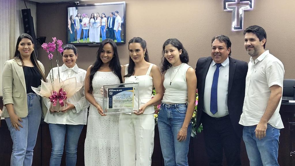 Para receber suas moções de aplausos estiveram presentes membros da Equipe Multiprofissional do Hospital Estadual Dr. Serafim de Carvalho, devido ao requerimento do vereador Deuzair Parente (o certificado foi entregue à coordenadora da equipe, a psicóloga Laryssa Hoff); a estudante de medicina Ana Carolina de Souza Aranha, indicada pelo vereador Vicente Mantelli; a miss Goiás 2024 Mirthes Almeida, também por iniciativa de Mantelli, e os policiais militares Flávio de Sales Ferreira e Marina Aparecida Sousa Barbosa, por indicação do mesmo parlamentar.